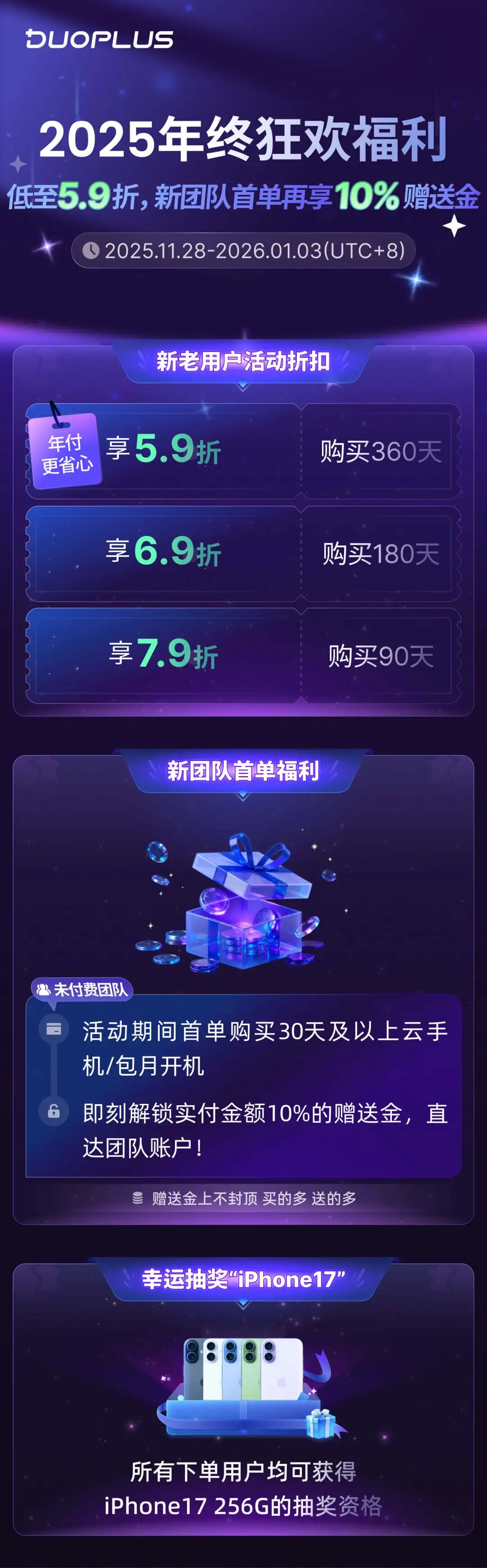 DuoPlus云手机通过提供独立、干净的Android设备环境,能够让你便捷管理跨境多账号业务,涵盖TikTok矩阵养号、跨境电商、海外社媒营销等场景。