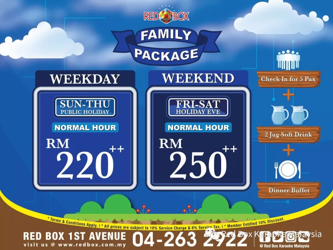 Come & visit Red Box Karaoke to enjoy your dinner and karaoke session with your friends or families! Check in for 5 pax to enjoy our 【FAMILY PACKAGE】 during Normal Hour & you may entitle for our dinner buffet and 2 jugs of soft drink with a special rate. You can even entitle 10% discount on total bill by presenting your member card to our receptionist during check-in.