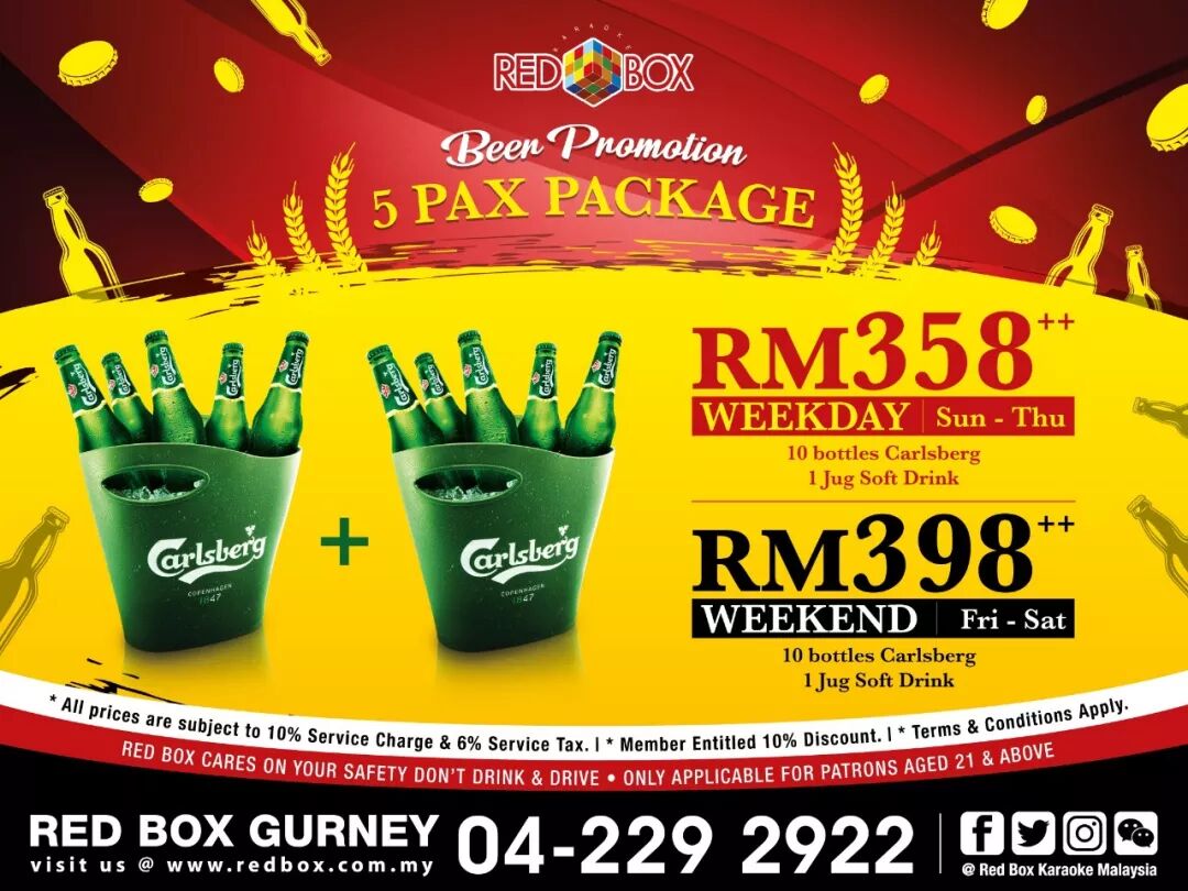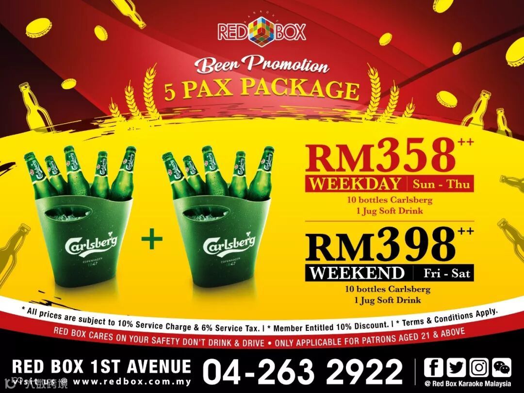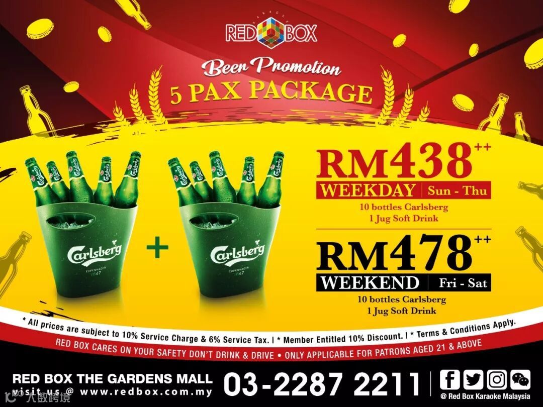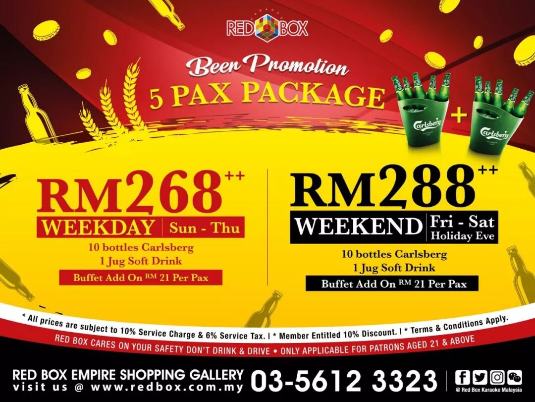 Enjoy Red Box's room offerings with beer package for 5 pax from as low as RM268++ at respective outlet. Additional privilege to Red Box Karaoke members, they are entitled to another 10% discount out of this package.