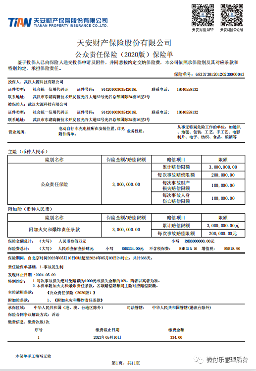 赔偿范围:在列明的充电桩安装范围内,因充电过程中发生火灾或爆炸造成第三者财产损失或人身伤亡