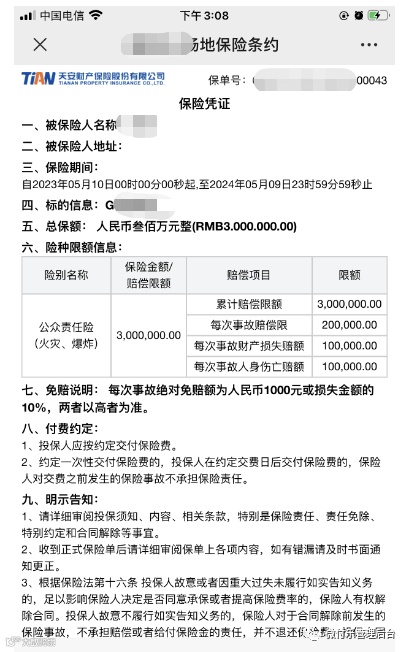 保险简述如下(详细条约,请参考公众号内容《场地险详述》):