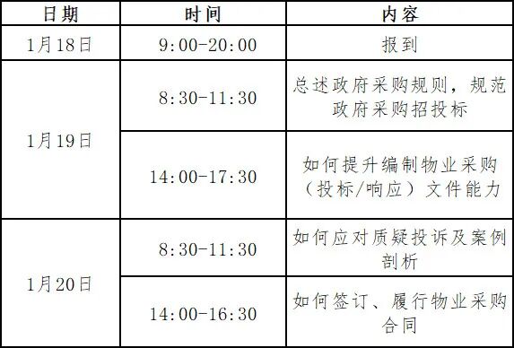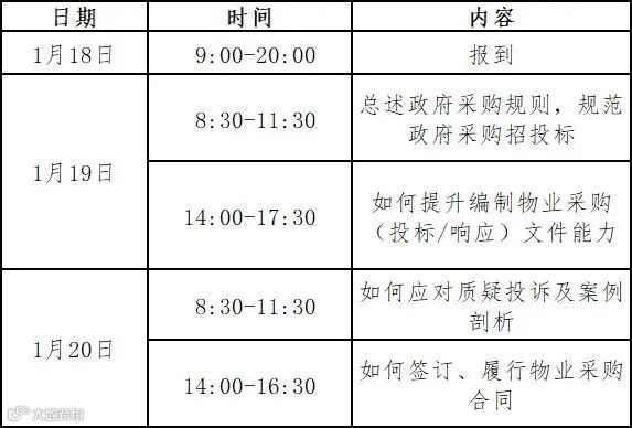 在推动经济高质量发展、优化提升政府采购营商环境大背景下,积极打造公开、公平、公正的政府采购环境尤为重要。“物业管理服务”作为《政府采购品目分类目录》的重要品目,占比最大,项目增长速度飞快。为助力物业服务商深耕政府采购市场,提升物业采购相关人员专业化水平,政府采购信息报联合正福易考通、正采研究院、正福易找标,紧扣高质量发展、优化政府采购营商环境主题,围绕政府采购物业管理服务行业现状和热门话题,通过线上线下相结合的方式,拟于2024年1月19日--20日在广州举办“全国政府采购物业管理服务高质量发展”培训班,现将有关事项通知如下: