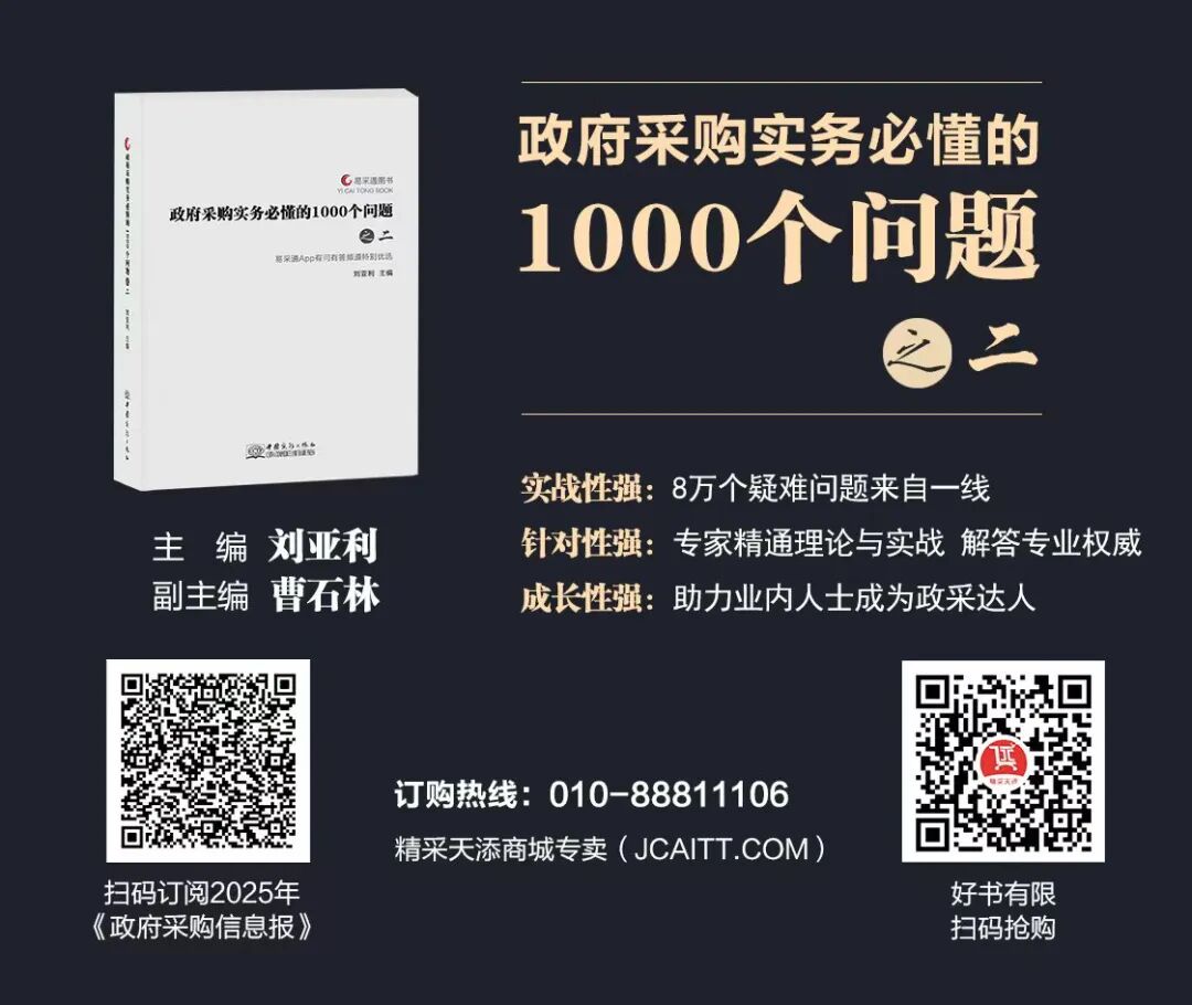 各位听友,如果你对本期音频有任何意见可以在留言板上留言探讨。为了更好地帮助同行解疑释惑,由本人和曹石林老师编著的《政府采购促进中小企业发展政策500问》《政府采购实务必懂的1000个问题(之二)》等系列图书已经与大家见面了,欢迎感兴趣的听友通过精采天添商城下单订购。