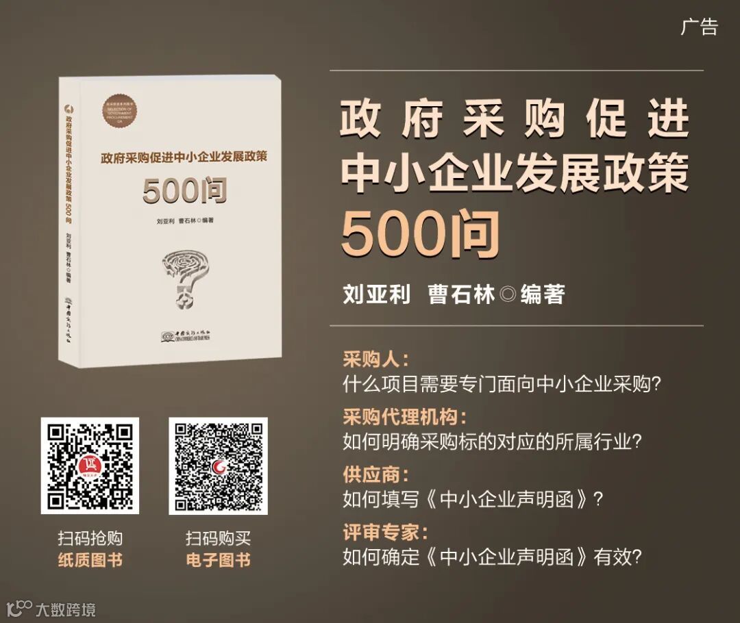 各位听友,如果你对本期音频有任何意见可以在留言板上留言探讨。为了更好地帮助同行解疑释惑,由本人和曹石林老师编著的《政府采购促进中小企业发展政策500问》《政府采购实务必懂的1000个问题(之二)》等系列图书已经与大家见面了,欢迎感兴趣的听友下单订购。