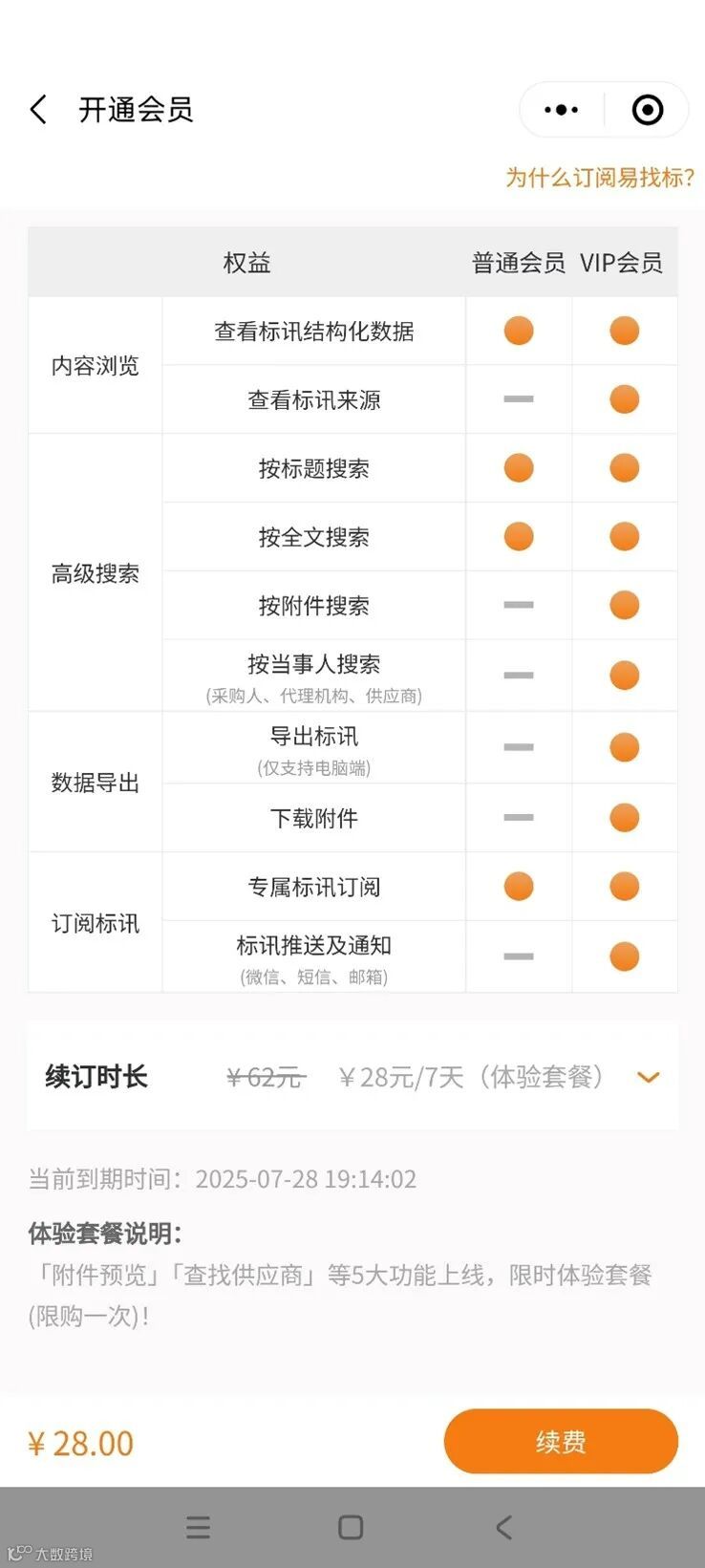 正福易找标的1年会员费用为2980元,几乎是其他标讯产品的一半。此次功能迭代还推出了99元的1个月体验套餐和28元的7天体验套餐,让您以更低的价格享受更多的服务。