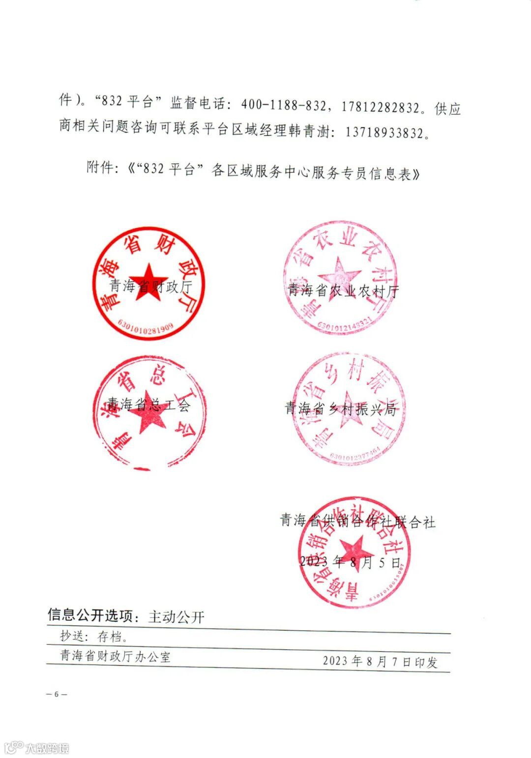 日前,青海省财政厅、青海省农业农村厅、青海省总工会、青海省乡村振兴局、青海省供销合作社联合社印发《关于做好2023年政府采购脱贫地区农副产品工作的通知》(青财采字〔2023〕972号,以下简称《通知》)。