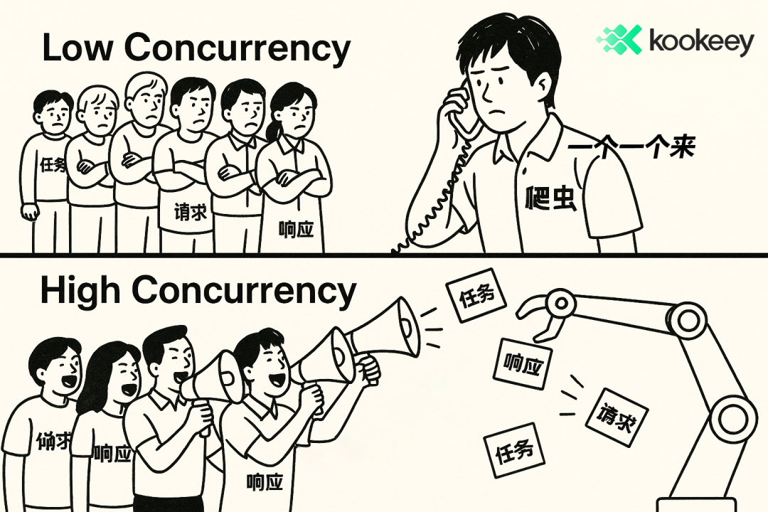底层逻辑:爬虫最耗时的是网络IO,而高并发正是把「网络等待」并行化,从时间线“压缩”到同一时刻。