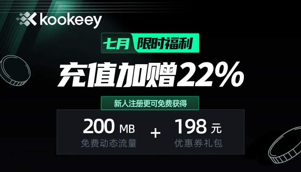 kookeey7月加赠福利,充值即可加赠22%,限时7月,先到先得!