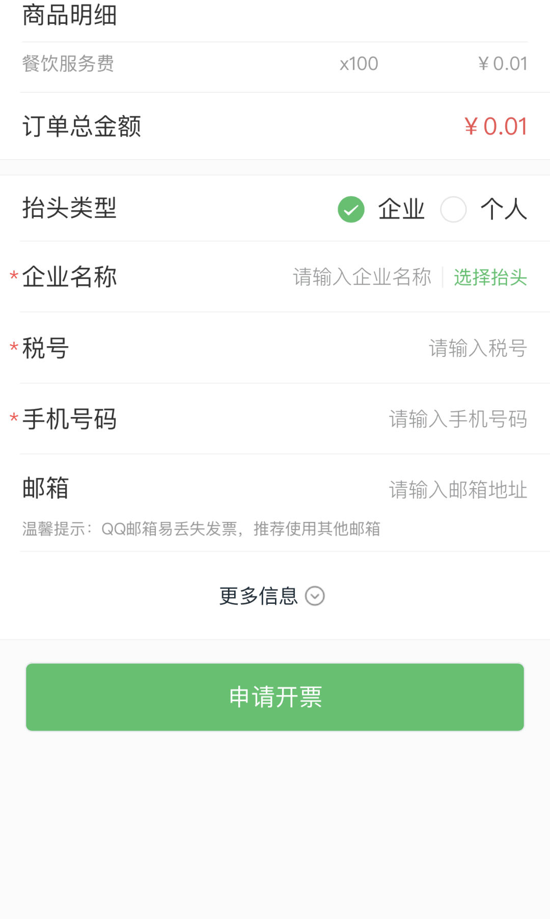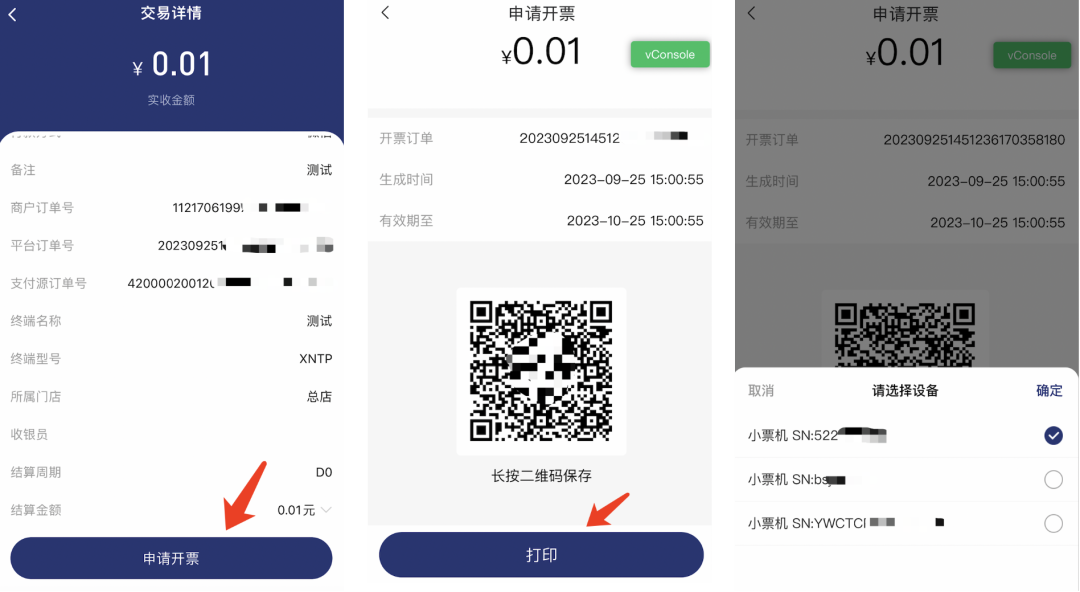 ✔支持通过展示开票码由消费者扫码选择订单开票