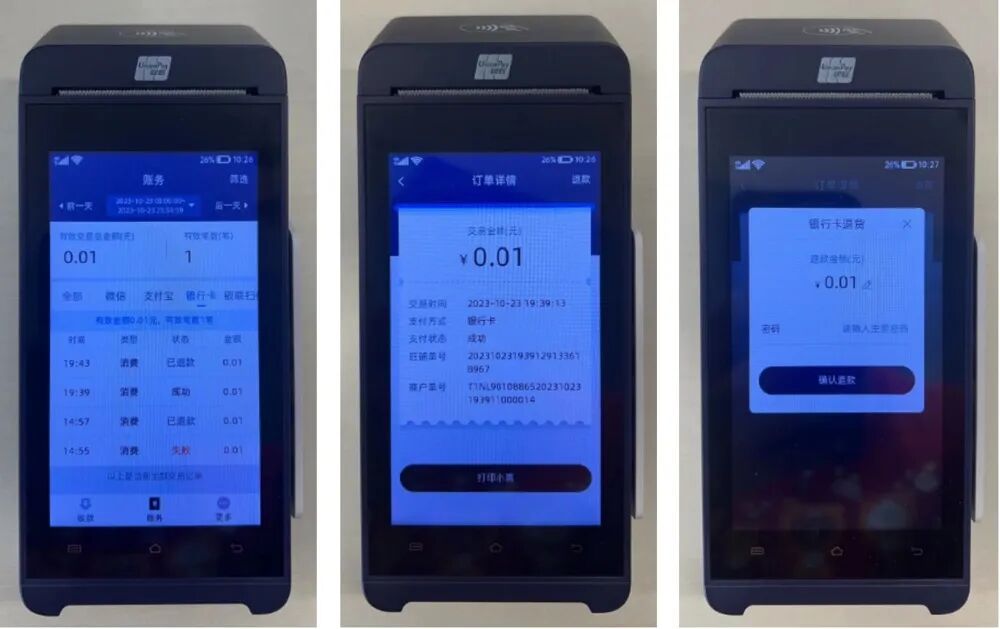 刷卡交易的隔日退款和扫码交易的撤销/退款也可在:更多-退货-银行卡交易退货/扫码交易退货中进行操作