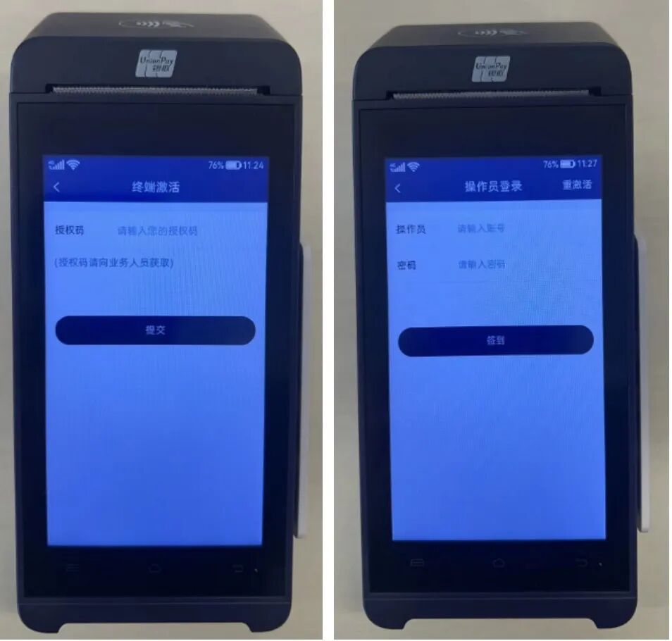 长按机具左侧开关键进行开机→默认进入激活码页面→输入激活码点击提交→自动进入签到页面→默认操作为01,操作员密码:0000