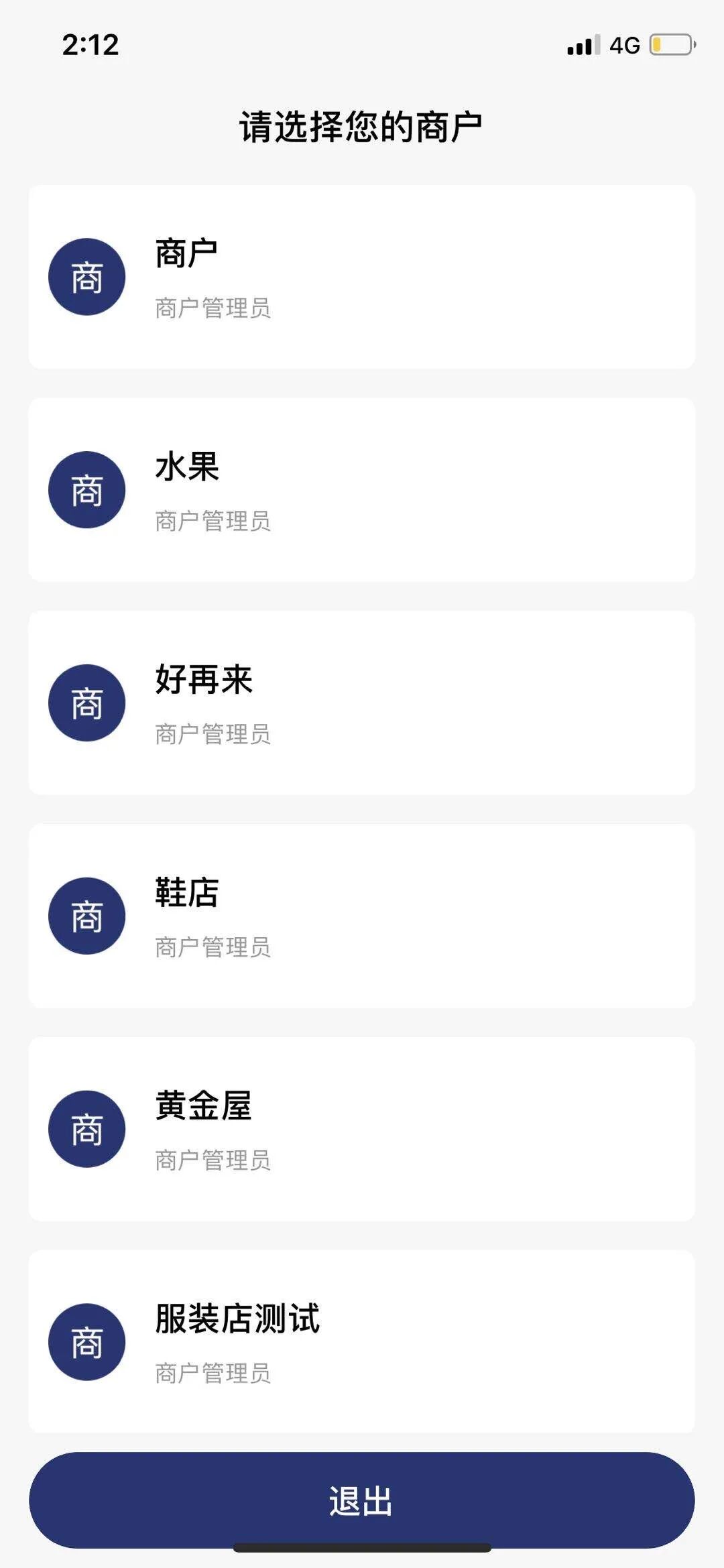 同一常用联系人手机号关联多个商家时,商家可自行选择需要登录的商户,在首页也可点击上方的商户名进行商户切换。