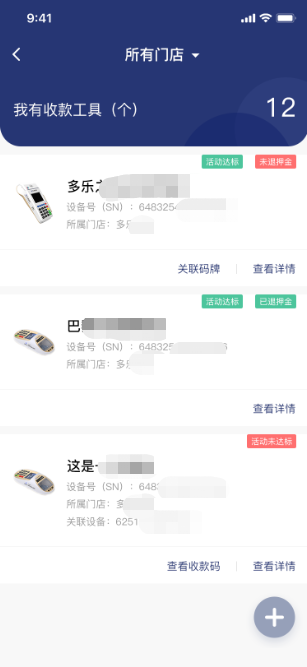 收款工具中,当设备类型为云音箱时,会显示关联码牌按钮,点击进入,会显示当前商户门店可绑定的码牌,可手动操作关联或取消关联。同一门店下才可以进行关联、取消关联。终端更换门店时,云音箱码牌关联关系会取消。