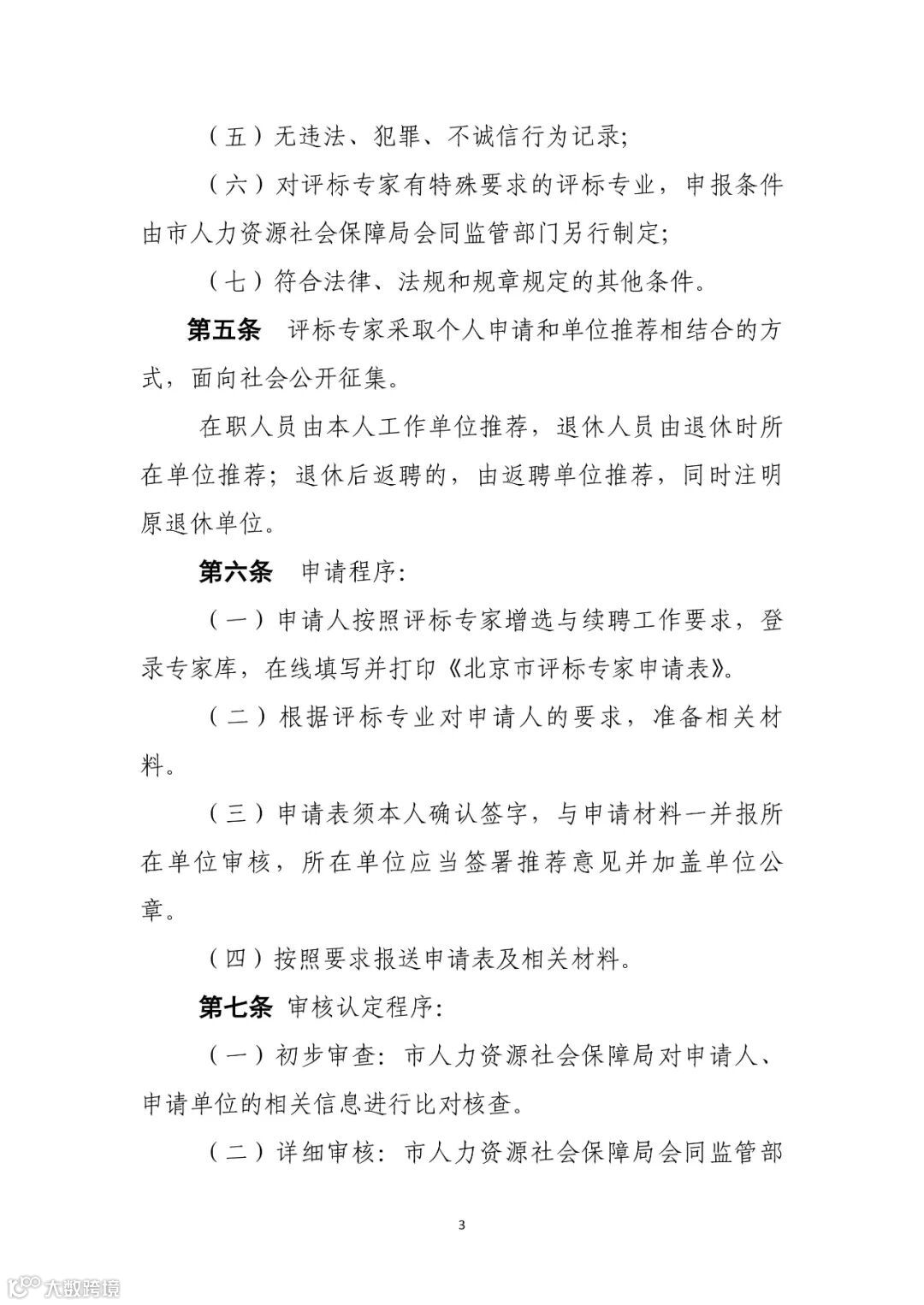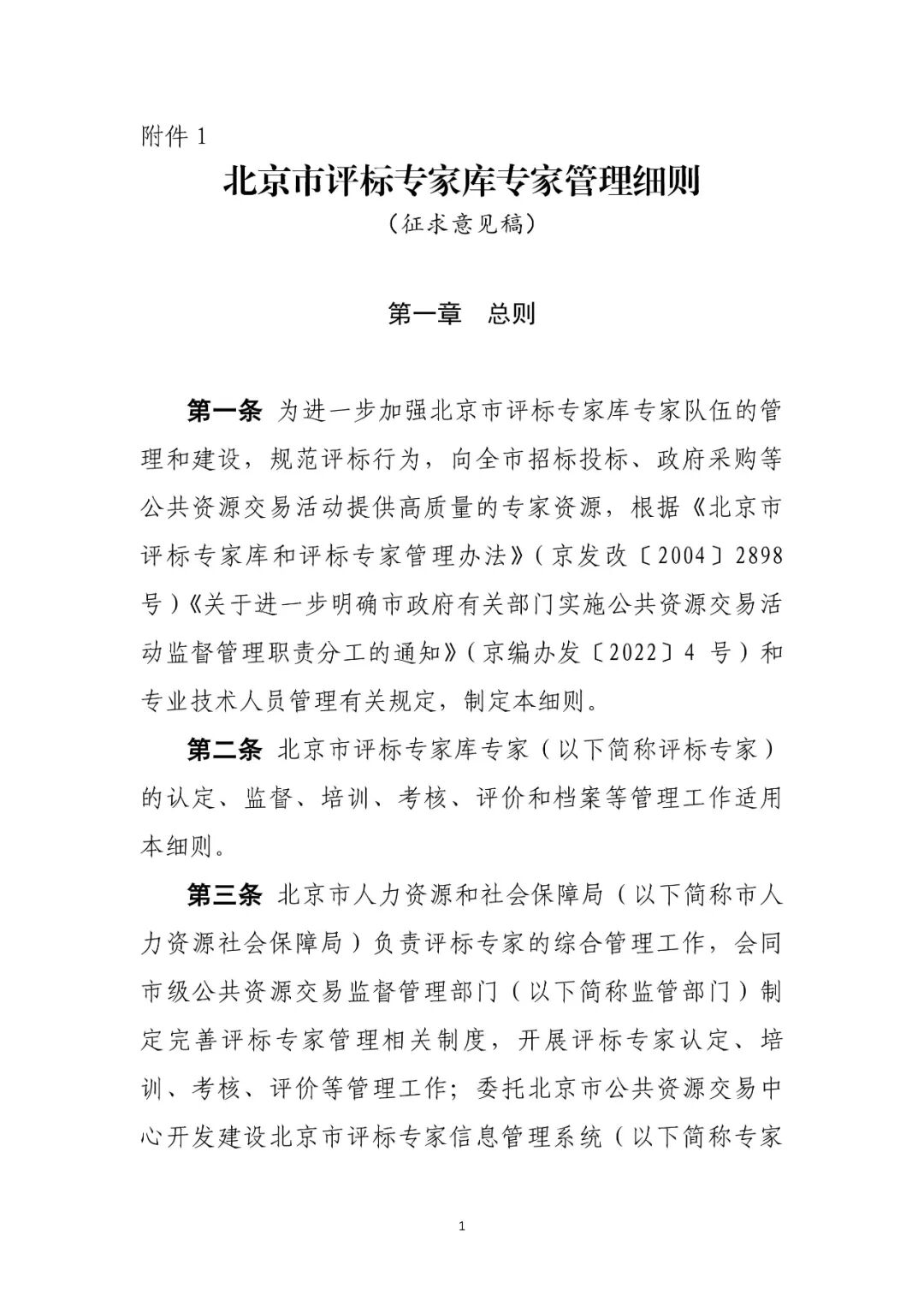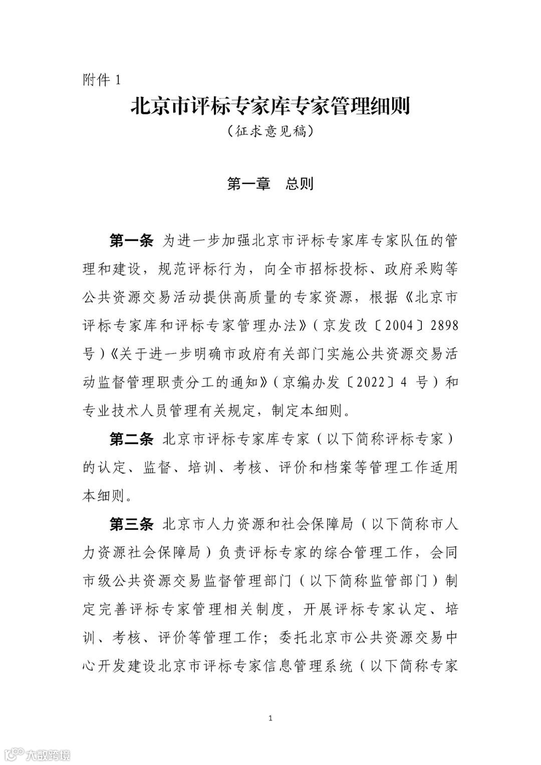 日前,北京市人力资源和社会保障局修订《北京评标专家库专家管理细则(征求意见稿)》(以下简称《征求意见》),现向社会公开征求意见。