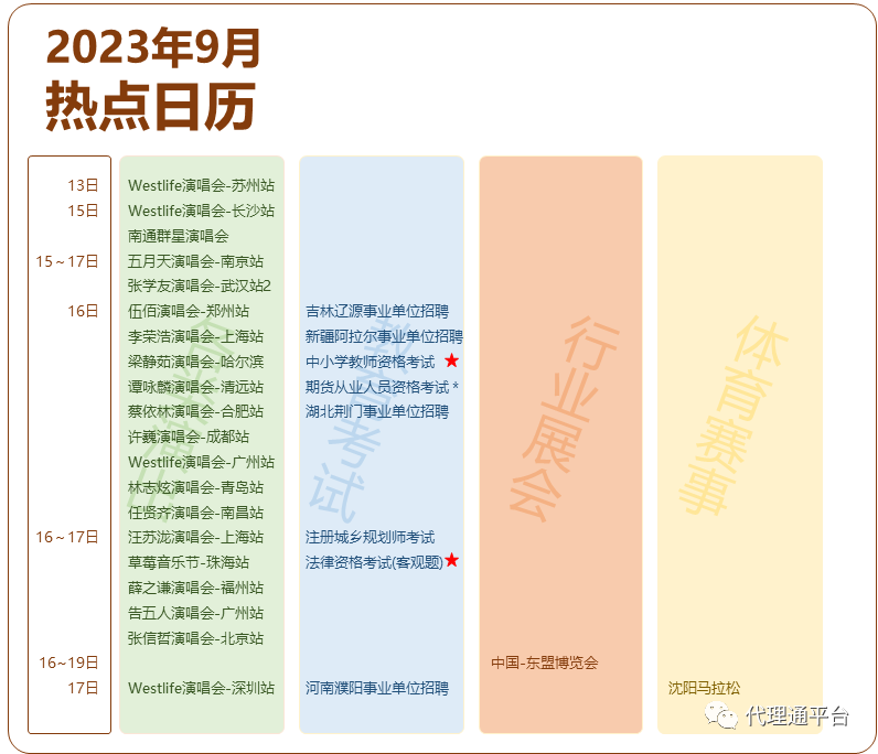 2023年9月热点事件日历已更新,重要事件已标星,需重点关注: