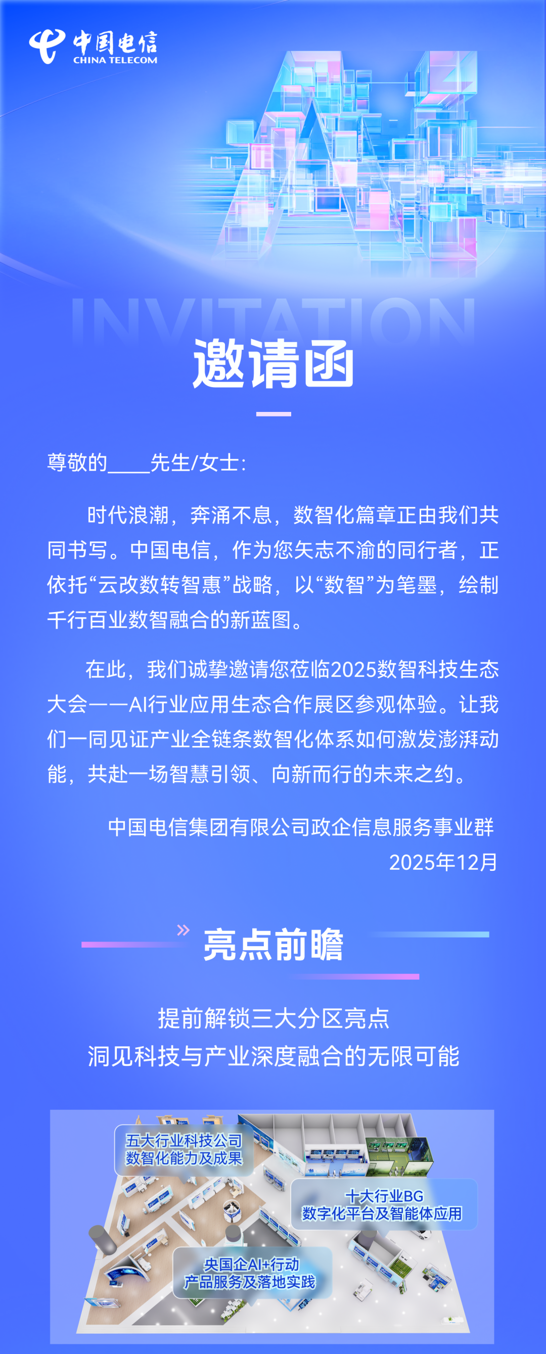 中国电信集团政企官方公众号。赋能千行百业,服务数字中国!