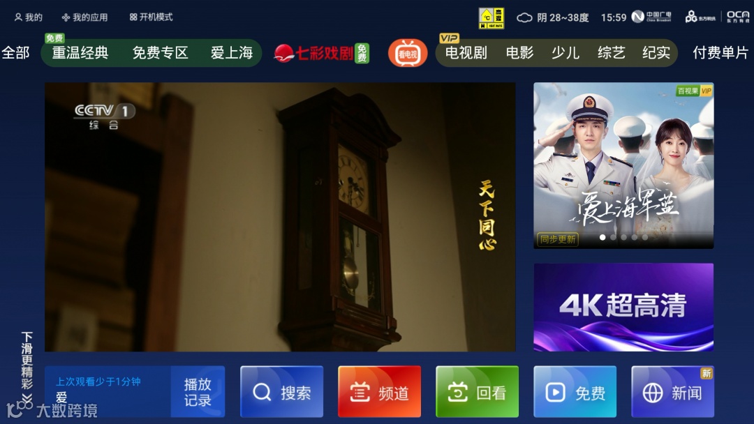 部分内容收看需智能机顶盒支持