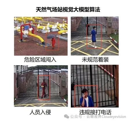 基于高精度图像识别与语义理解,实时监测生产环境中的设备异常、人员违规操作(如未佩戴防护装备)、危险区域闯入等风险,预警准确率达98%,事故发生率降低50%+;面对生产企业复杂的自然环境和背景环境,视觉大模型仍然可提供高精度的目标检测能力。