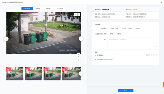 垃圾桶满溢检测算法依托云眼视界机器视觉目标检测技术,可对垃圾桶、垃圾桶盖以及物料的堆积状态进行实时检测。
