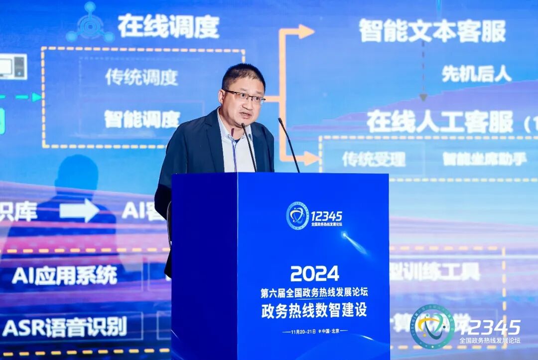 11月21日,2024(第六届)全国政务热线发展论坛在北京举办,中国电信集团有限公司数字政务行业事业部总裁、中电信数政科技有限公司总经理蔡旭东受邀出席并以《新质赋能,助力政务热线数智化升级》为题,和与会代表共同分享了中国电信以人工智能为引擎,推进AI+政务热线建设的探索与实践。