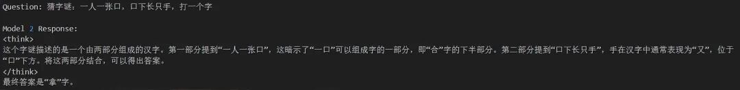 此外,微调后的模型能够更稳定地输出带有完整思考过程的答案,包括清晰的推理步骤和逻辑链条,这不仅增强了答案的可信度,也提高了模型在实际应用中的实用性。对比结果如下: