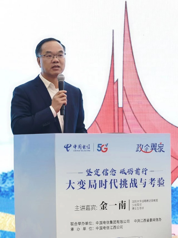 11月30日上午,中国电信“政企翼家”系列客户关怀活动全国首场讲座在江西省行政会议中心举行。本次活动由中国电信集团有限公司政企信息服务事业群、中共江西省委网络安全和信息化委员会办公室联合举办,中国电信江西公司承办,邀请军事专家金一南将军为政企头部客户带来了《坚定信念 砥砺前行——大变局时代挑战与考验》主题演讲,同时开展了服务满意度调研。