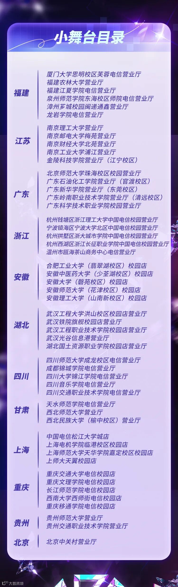 中国电信青年一派联合B站向全国12个省24城51所高校空投的小舞台已经闪亮登场,聚光灯即将照亮校园中每个女生的音乐梦想。音乐女生们可以通过小舞台唱歌录歌,一键直通上传作品。快拉到文末的【小舞台目录】检索距你最近的小舞台尽情表演、拍照打卡吧!