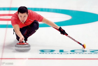 2018年2月8日,韩国平昌冬奥会江陵冰壶中心,中国混双选手巴德鑫正在做掷壶准备