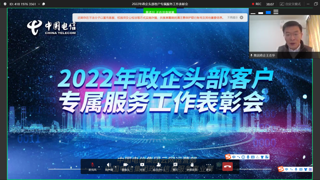 至此,“2022年政企头部客户专属服务表彰暨交流会”圆满结束。2023年全国政企客户专属团队将更好地服务客户,保证客户满意,为中国电信数字化转型和高质量发展贡献力量!