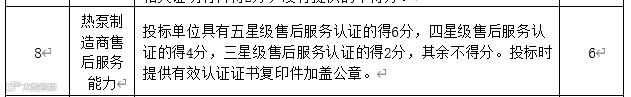 案例四:采购文件要求投标单位具有五星级售后服务认证的得6分,四星级售后服务认证的得4分,三星级售后服务认证的得2分,其余不得分。投标时提供有效认证证书复印件加盖公章。(如下图)