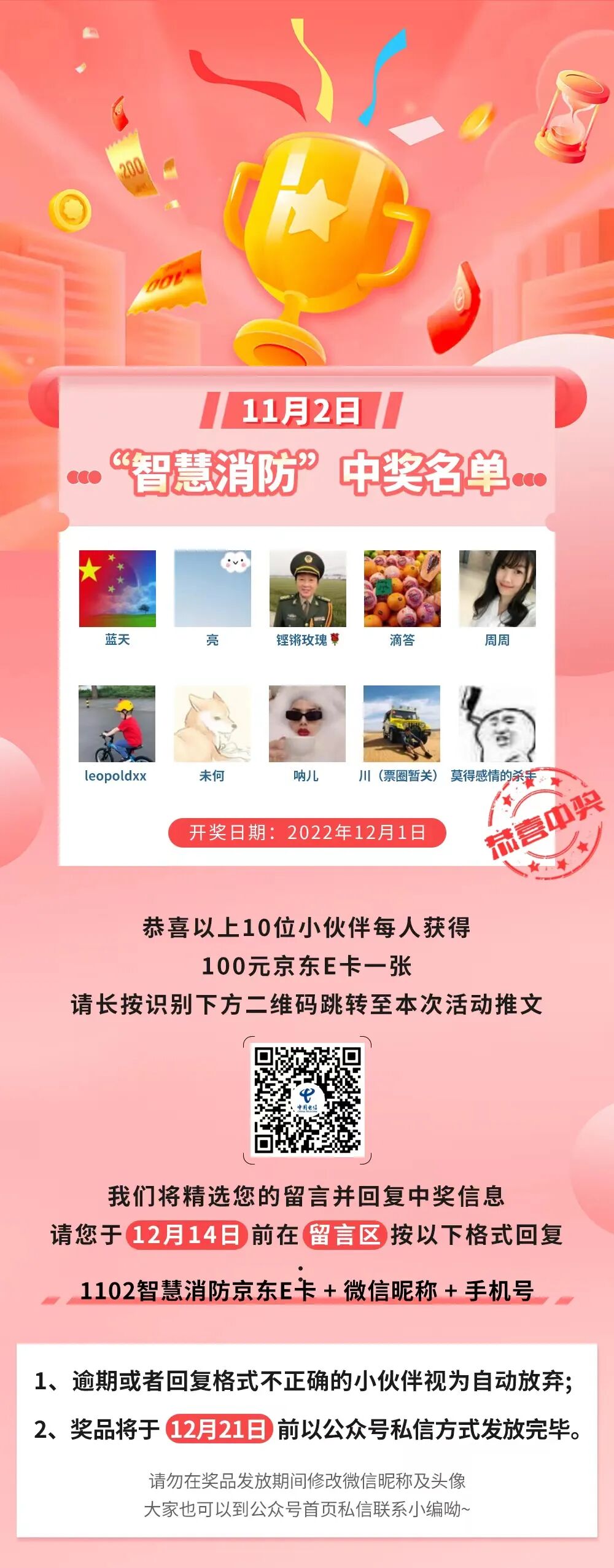 【开奖啦!】“智慧消防”、“喜报”中奖名单已产生~