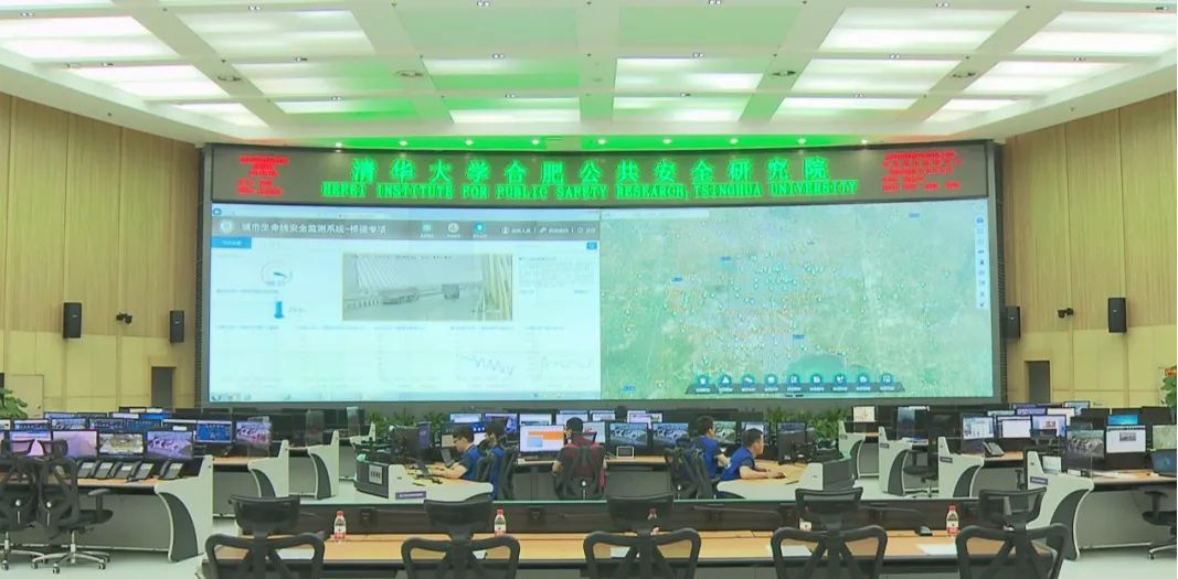 在清华大学合肥公共安全研究院,大家可以看到大屏幕上密集地布满了监测点位,这意味着整个合肥市的燃气、供水、桥梁、热力等各个系统正在被实时地进行安全监测,只要监测点位一闪烁,工作人员就可以及时发现警情,从源头上防范化解城市风险。