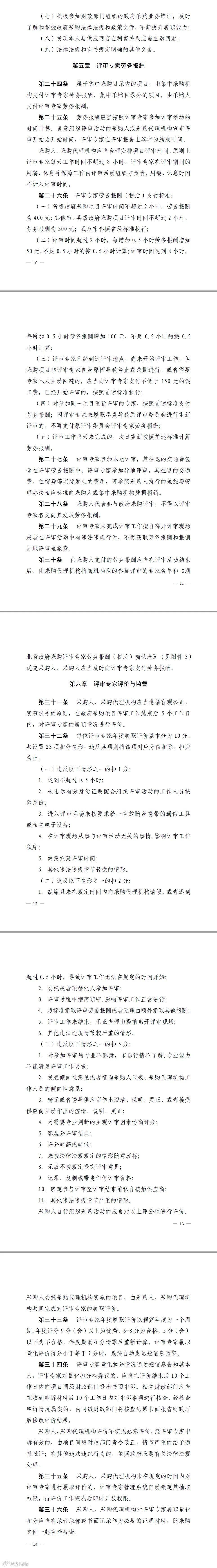 湖北省财政厅政府采购相关负责人介绍,评审专家劳务报酬支付标准主要是比照省公共资源交易管理局关于《湖北省评标(评审)专家及专家库管理办法》中评审专家的劳务报酬标准,解决“同工不同酬”的问题。