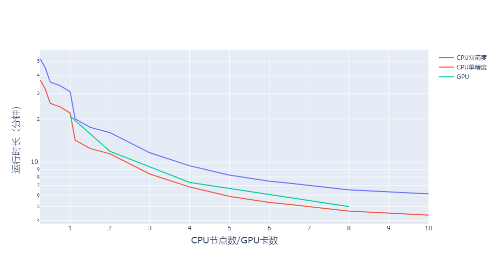 使用单卡GPU的性价比最高,约比CPU上单精度计算便宜25%,比传统的双精度便宜50%左右;