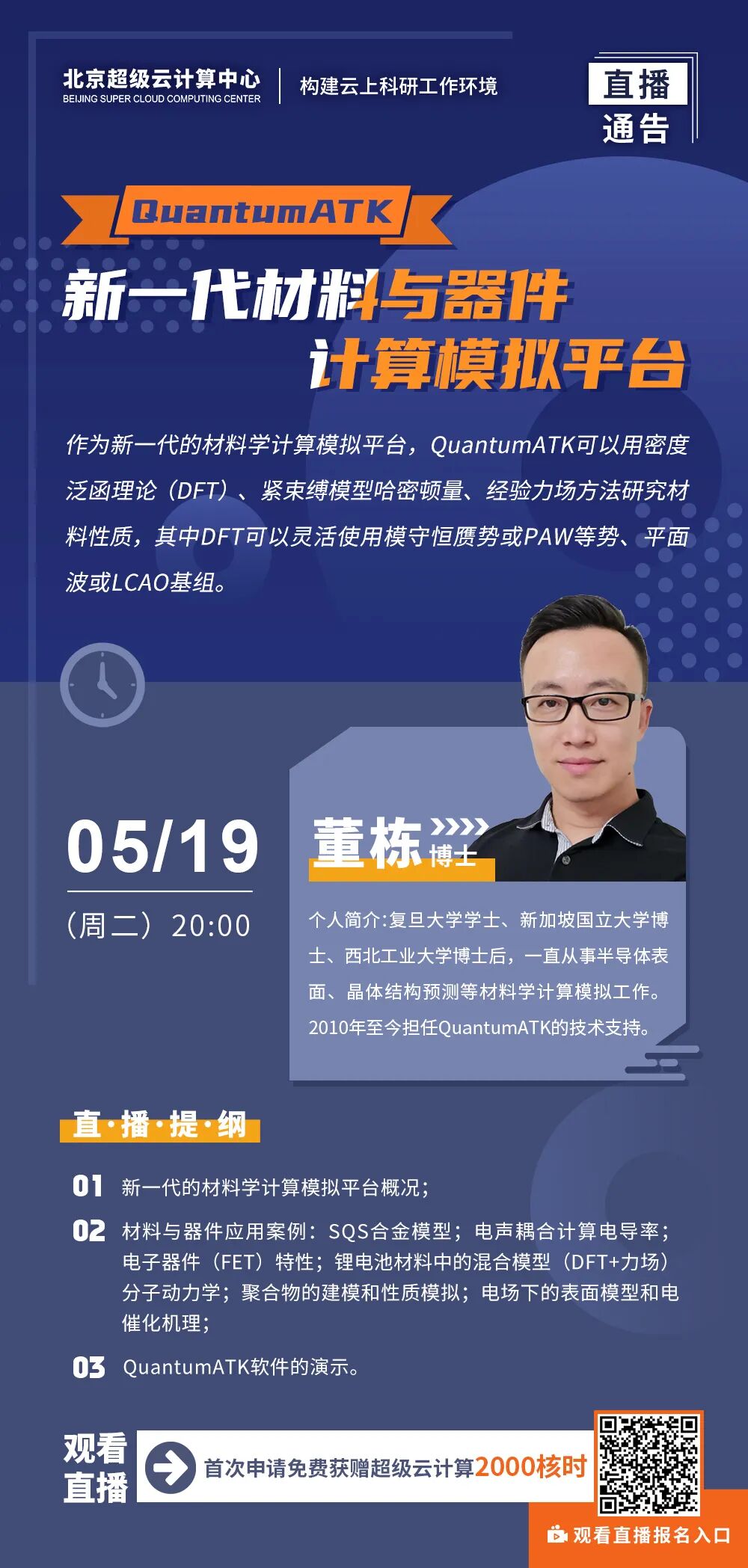 导读:5月19日 20:00,董栋博士带您了解新一代材料与器件计算模拟平台QuantumATK,欢迎报名观看!