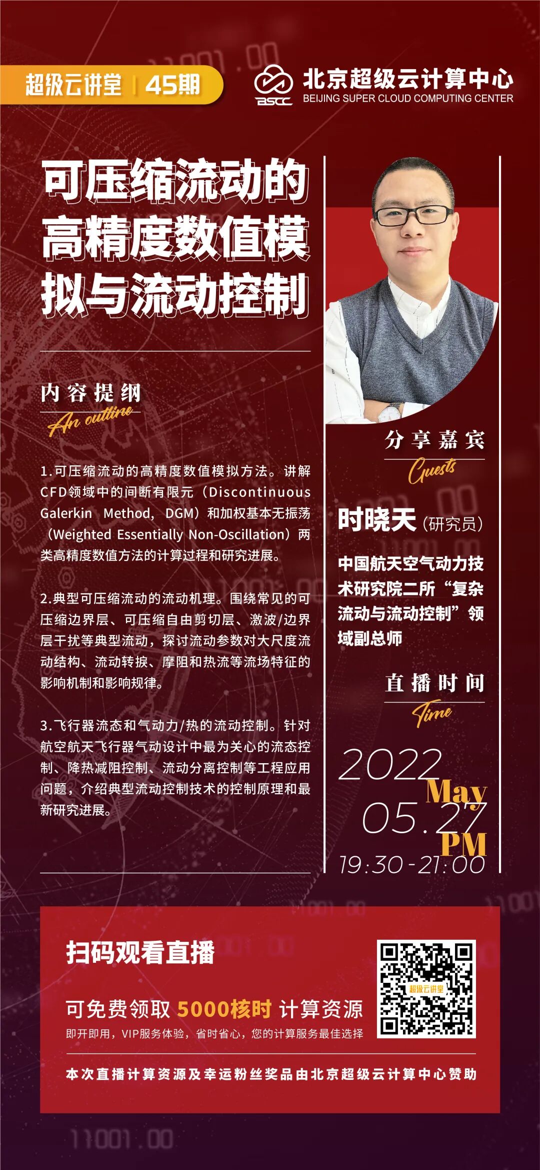 5月27日晚上,时老师将做客直播间,为我们带来《可压缩流动的高精度数值模拟与流动控制》主题分享,具体信息见下文。