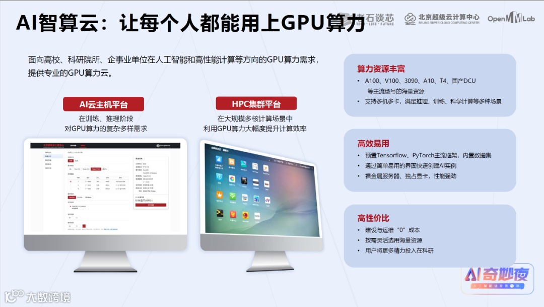 对于自动驾驶相关算法对于算力的需求,石侃老师提供了一个大家都能使用的方案:云上 GPU 算力—— AI 智算云。
