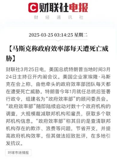 因为现在很多抗议马斯克的人的理由是,马斯克作为一个非民选官员,DOGE也只是临时部门,不属于正式美国联邦政府机构,只能在政府外部提供意见与指导。