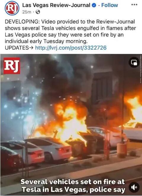 3月18日,美国拉斯维加斯再次发生特斯拉汽车遭纵火事件,导致5辆特斯拉汽车受损。
