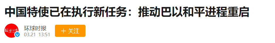 在成功斡旋沙伊和解之后,中方特使马不停蹄奔赴中东开始调节巴以冲突。