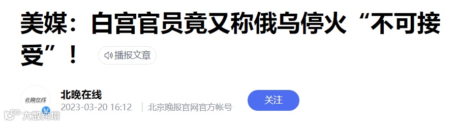 中方高层才刚刚到达俄罗斯,美国又出昏招,居然公开宣布,呼吁俄乌停火是不可接受的。
