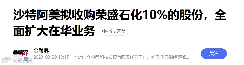 今年以来,沙特先是收购民营炼化龙头荣盛石化的股份,以36亿美元入股10%,溢价88%。