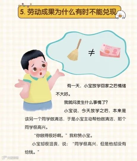 这个问题就是引导孩子平时不能太功利,付出就一定要索取回报,劳动变现不需要一定在一个时空完成。