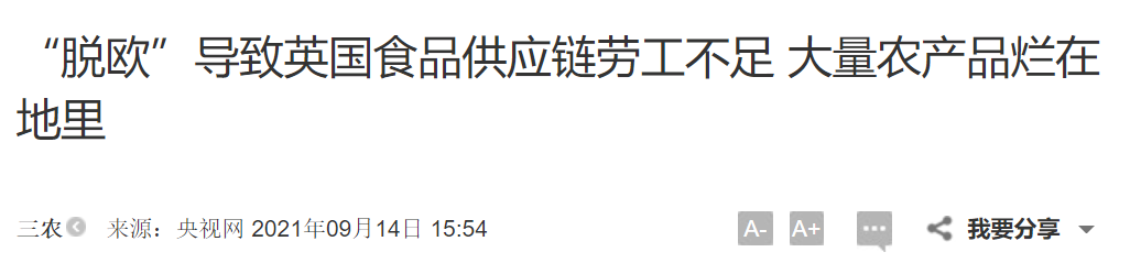 但脱欧后,英国入境政策收紧,去英国工作的欧洲人直线下跌,导致英国多个行业的用工荒,比如英国的食品行业,8月份的时候由于雇不到人采摘农作物,有6000万英镑的番茄、土豆烂在了地里,工厂更是因为招不到员工而面临减产。
