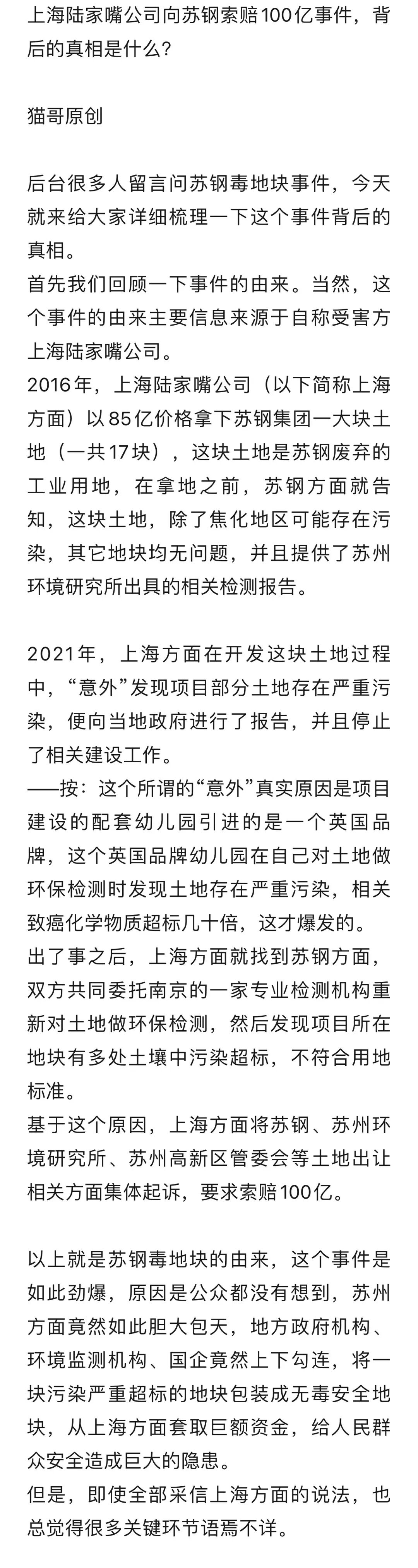 ——上海陆家嘴公司向苏钢索赔100亿,事件的真相难道真的如陆家嘴公司发布的公告所说的么?猫哥给你梳理背后的真相,看看这群猪队友。