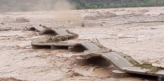 有了这些舟桥,一些挖掘机、推土机等大型机械就能克服地形条件,尽快赶往险情地点进行作业。