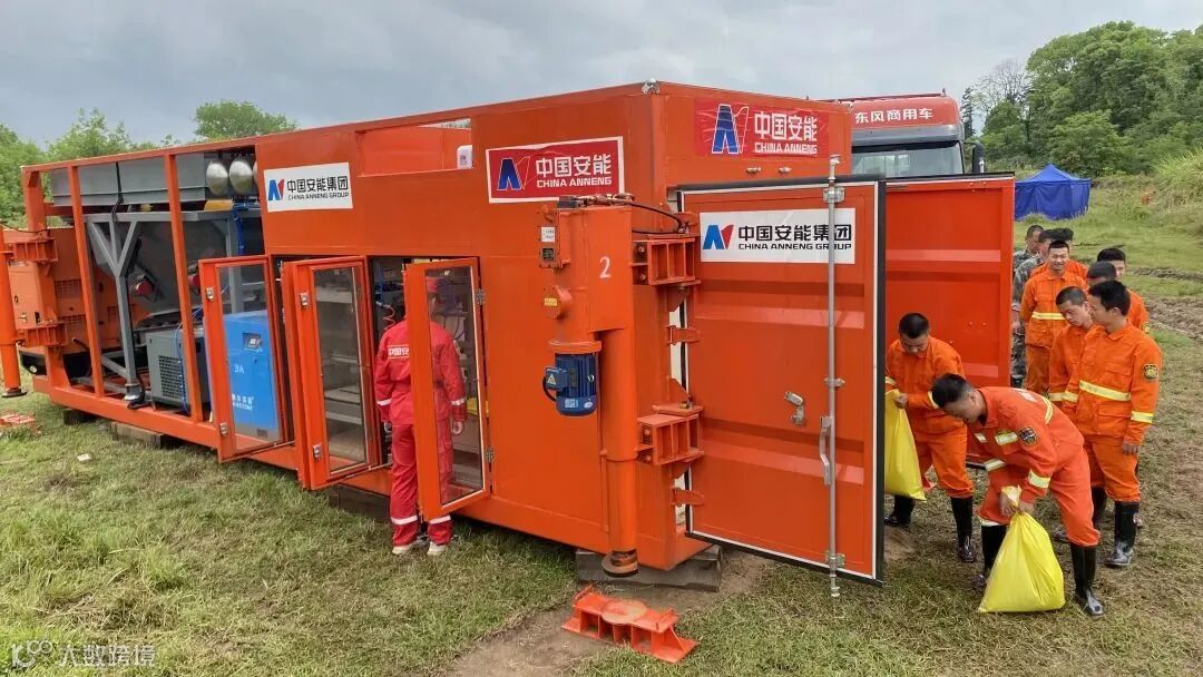 砂石自动装袋机可实现沙石自动装、封袋,单台效率可替代 60 个人以上人工救援。