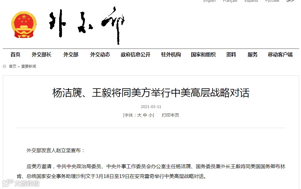 3月11日,赵司长才宣布应美方邀请,双方将举行中美高层战略对话。