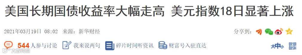拜登政府为了刺激经济推出1.9万亿的纾困计划,后面还有一个2万亿的基建计划,理论上美联储可以通过无限印钞来解决,但是美国国债却在市场冷遇,不但购买者寥寥,而且国债利率一直向上飙升,这可不是一个好兆头。