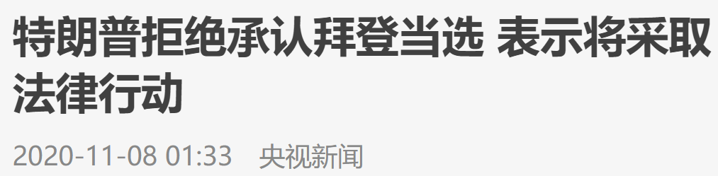 与此同时,美国媒体另一个新闻标题则充满嘲弄的意味:特朗普拒绝承认失败,将采取法律行动。